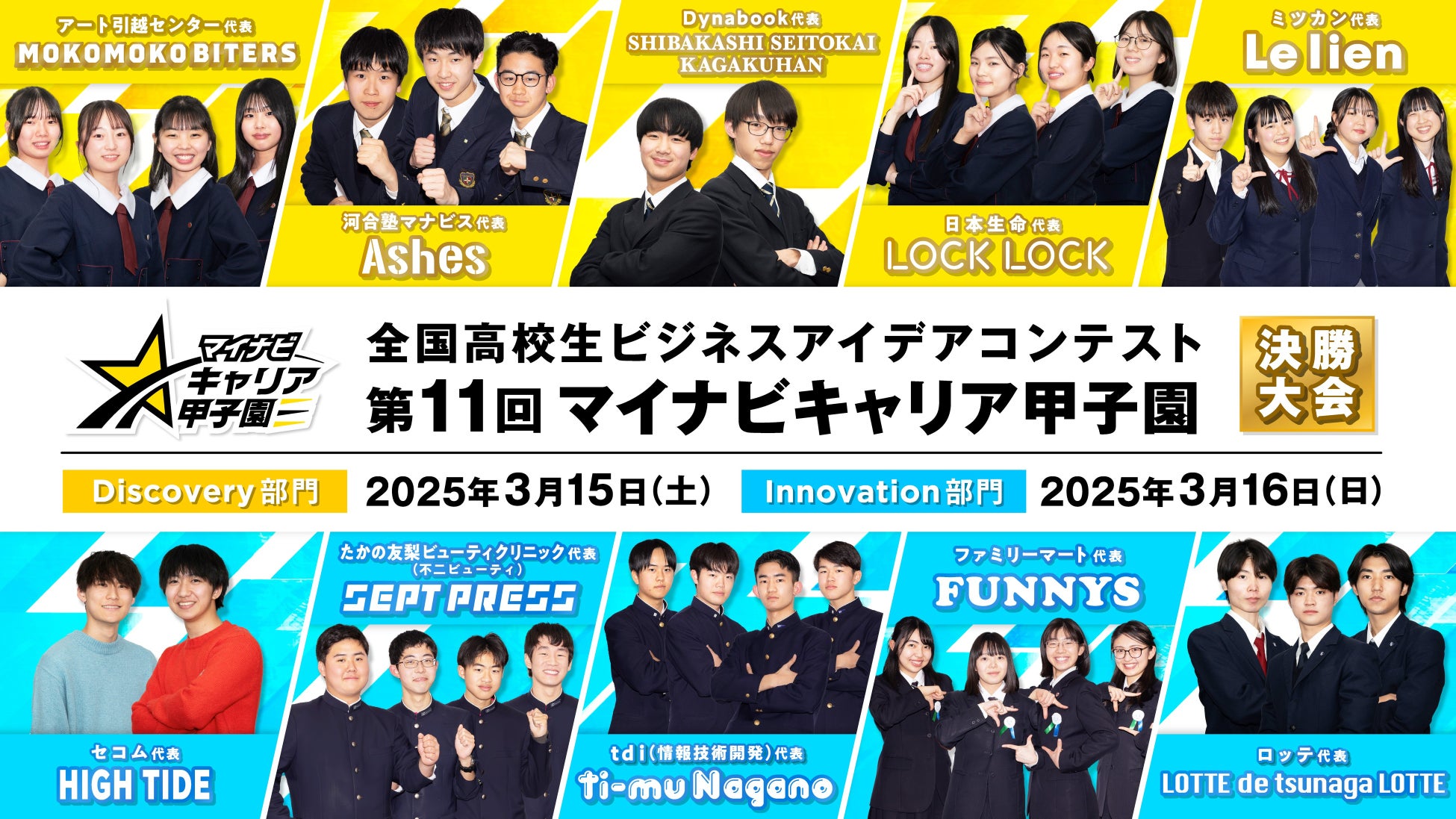 株式会社マイナビ(本社:東京都千代田区、代表取締役 社長執行役員:土屋芳明)は、全国の高校生を対象にした国内最大級のビジネスアイデアコンテスト「第11回マイナビキャリア甲子園」の決勝大会を、2025年3月15日(土)、16日(日)に、大手町三井ホール / 大手町三井カンファレンス(東京都千代田区)で開催します。
