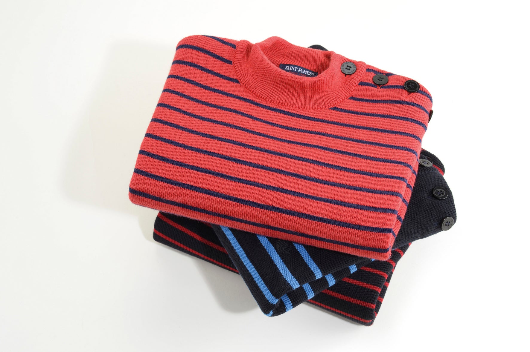「Saint James」は、1850 年にフランス北西部、ノルマンディー地方のモン・サン=ミシェル近くに位置するセントジェームス市で誕生したライフスタイルブランドです。創業のきっかけとなったウールセーターは北大西洋の過酷な気候にも耐えうる高品質な仕事着としてノルマンディー・ブルターニュ沿岸の漁師や船乗りたちに愛用され、以来「Saint James」は 135年以上にわたりフランス国民に親しまれています。ブランドの象徴であるボーダーシャツはフランス海軍の制服として用いられていたことでも知られ、最近では 2025 大阪・関西万博でフランス館の制服として採用されています。