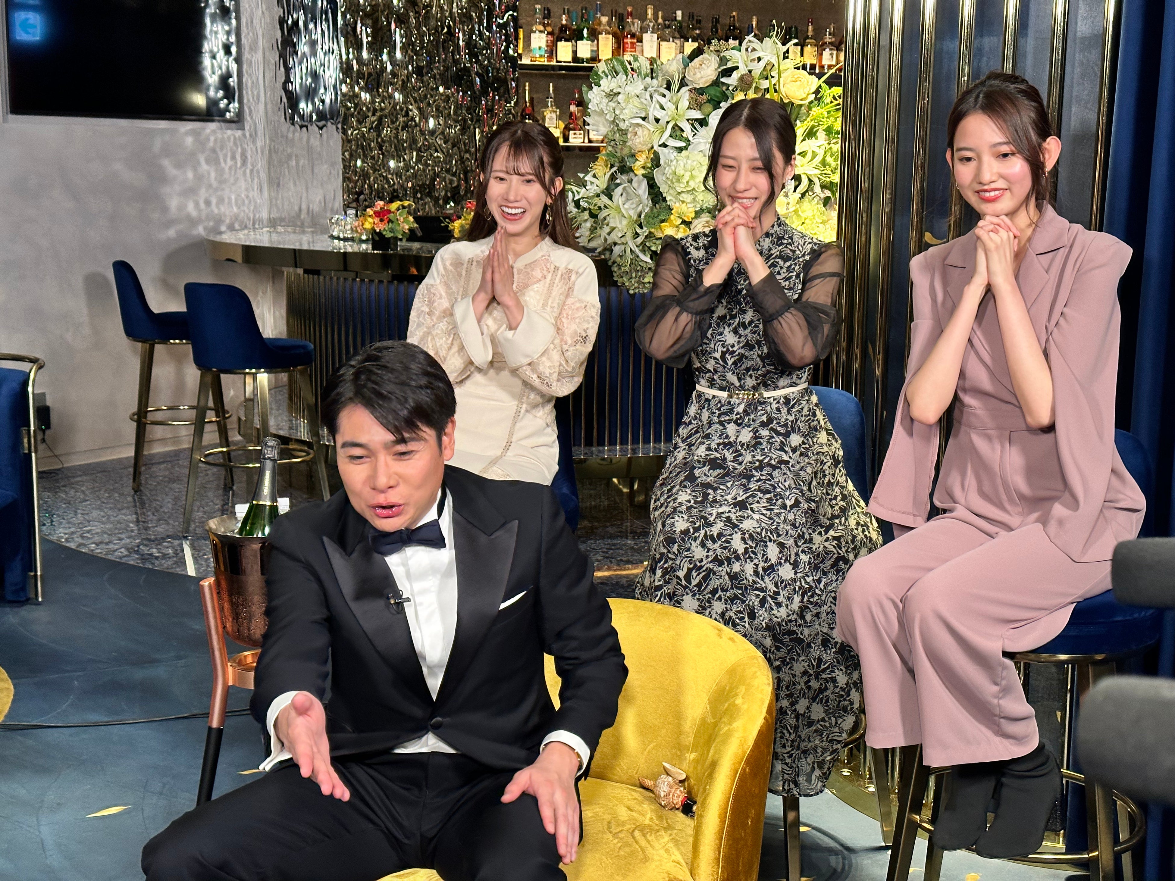 スタジオでは、吉村、澄田綾乃、名取くるみ、黒木麗奈、そしてゲストのコロコロチキチキペッパーズ(西野創人、ナダル)が合コンの模様をウォッチングします。