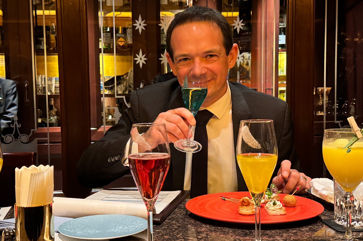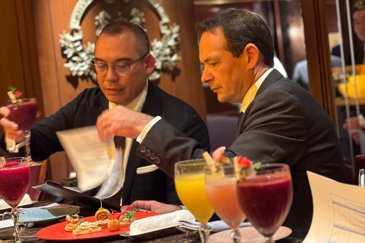 世界的シャンパーニュメゾン〈ポメリー〉の最高醸造責任者のクレマン・ピエルロー様をお迎えし、ホテルオリジナルのシャンパンカクテルの試飲会を開催。シャンパンとフルーツの繊細なバランスと華やかな香りに「美味しい」とお墨付きをいただきました。特にバー「オリエントエクスプレス」の“ルミエールペシェ”と、ダイニング&バー「オーヴェスト」の“ルージュロワイヤル”の2種類をお気に召していただき、バーテンダーの技とセンスを高く評価されました。