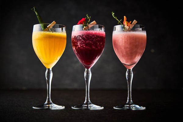 ダイニング&バー「オーヴェスト」では、シャンパンボトルの象徴的なカラーを基に、色鮮やかな色合いで仕上げたカクテルをご用意いたします。フルーツリキュールと組み合わせたシャンパンのきめ細やかな泡と爽やかな味わいをご堪能いただけます。ホテル最上階に位置する地上100mからの夜景とともに上質な時間をお過ごしください。
