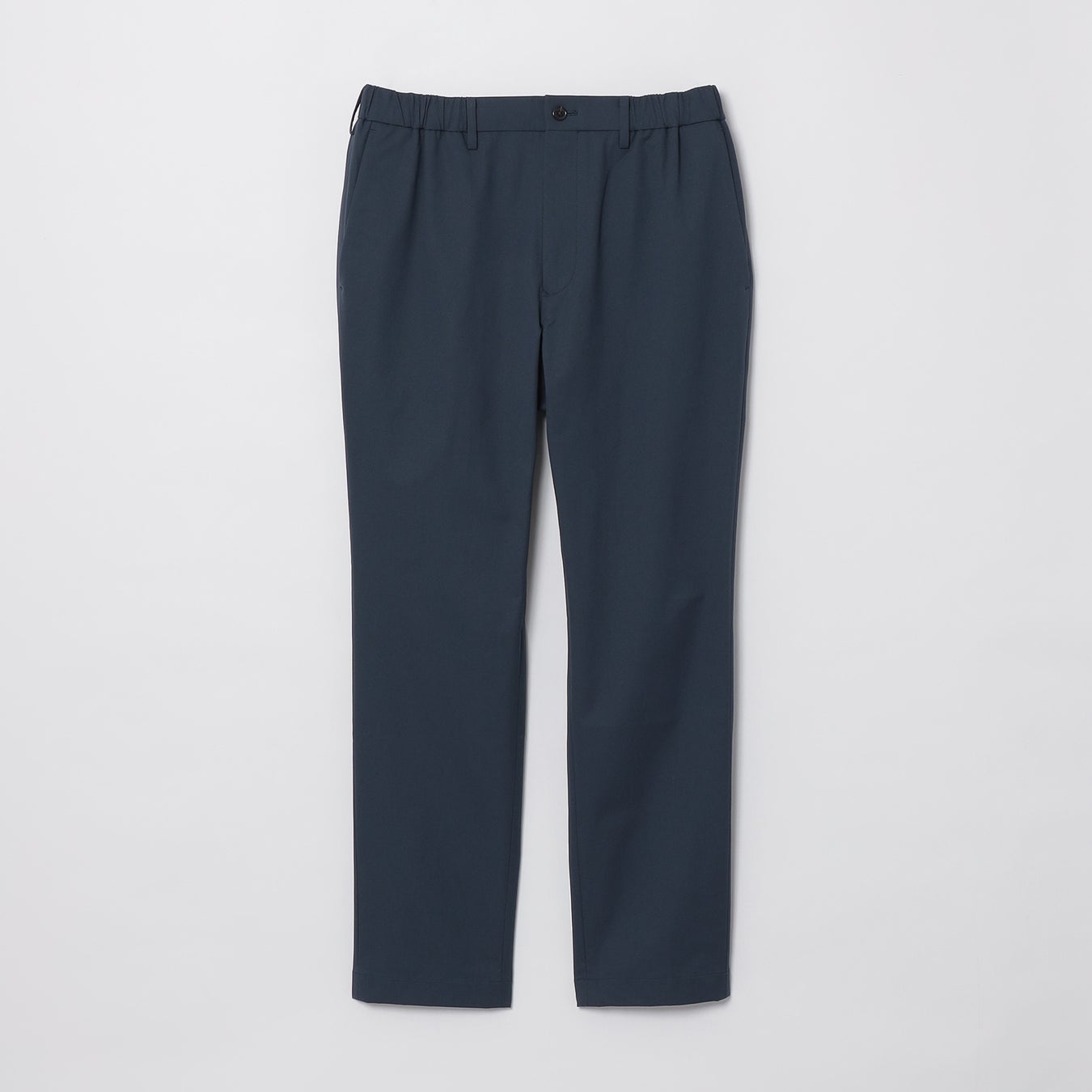 84%・ポリエステル16% 【サイズ】38R、40R 【カラー】ネイビー ウエストベルト内に1周ぐるりと平ゴムとスピンドルを使用したスポーティ仕様のイージーパンツ。
