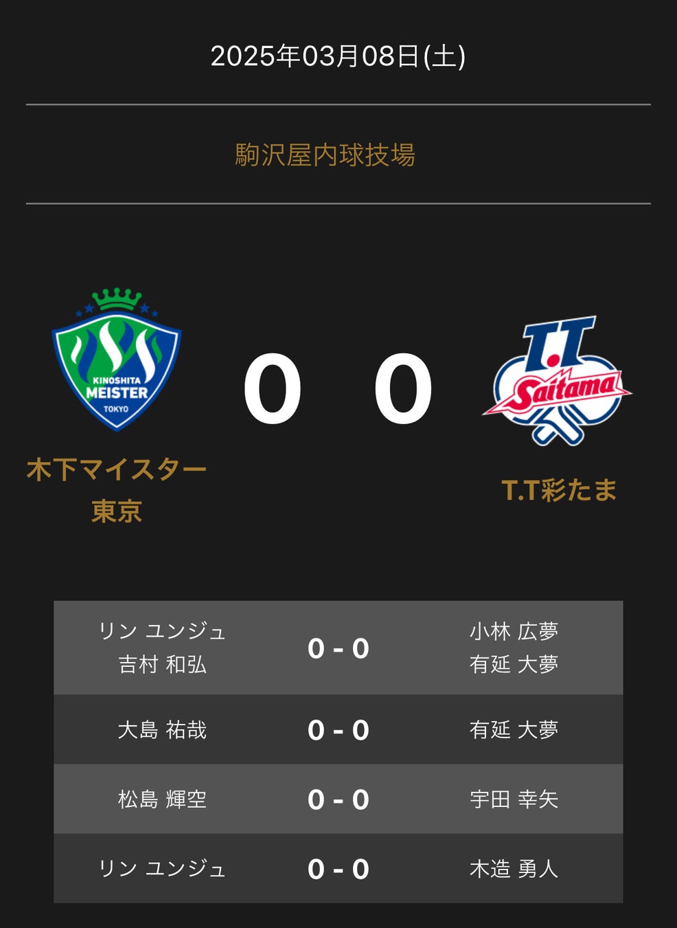 ノジマTリーグ 2024-2025シーズン 公式戦 3月8日開催 木下マイスター東京 vs T.T彩たま 対戦オーダー発表
