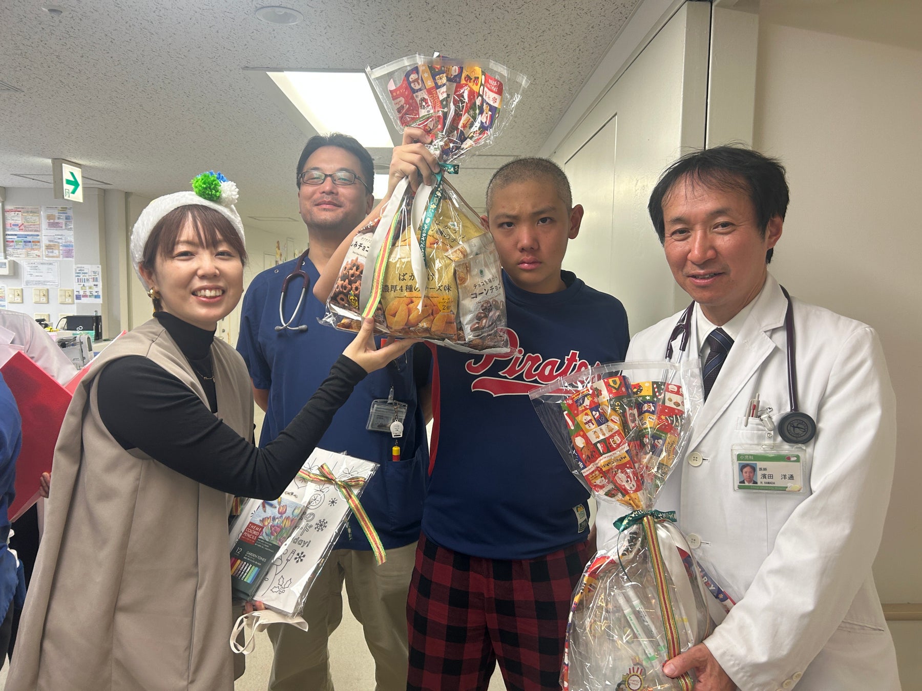 千葉大学医学部附属病院へ2025年12月16日(火)に当社社員が同会のこどもたちと訪問し、「みんなのレモネード」の売上の一部を活用したクリスマスプレゼントを寄贈しました。