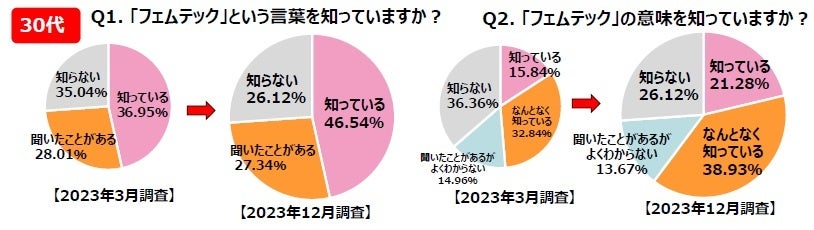 20代・30代で「フェムテック」という言葉を「知らない」と答えた人の割合は約8%減少しました。