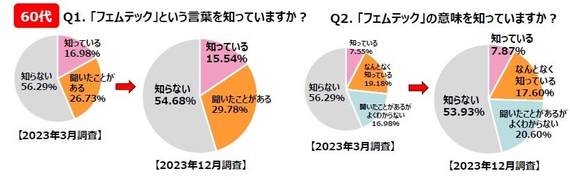 ●50代・60代は前回調査から大きく変化なく、女性の健康課題とフェムテックが結びついていない可能性も