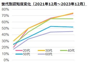 ●40代は、認知度はほぼ横ばいだが、関心を持った人が知識を深めていく傾向が見えた