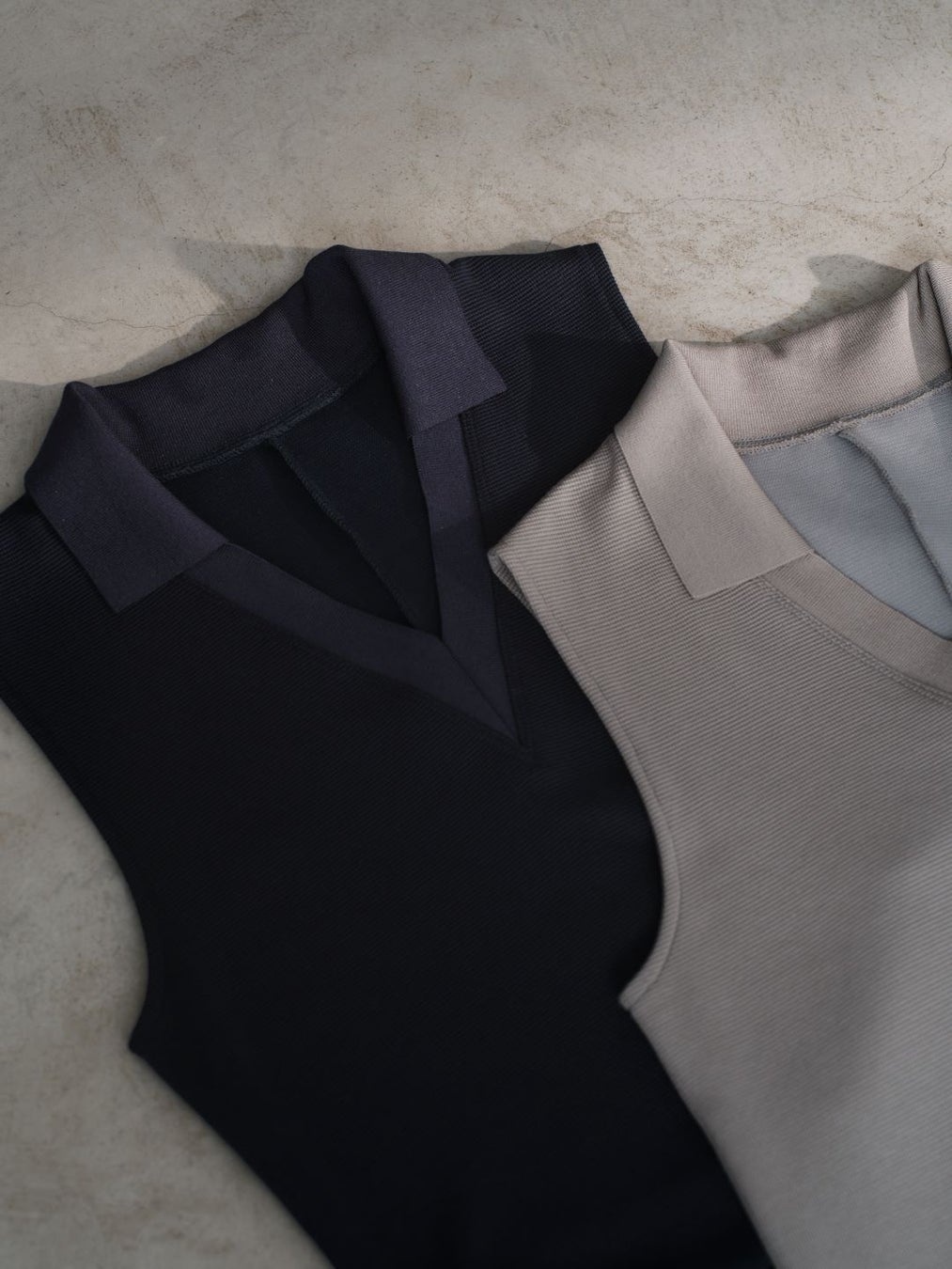 ニットだけどドライタッチで通気性も良く、真夏に着たい、一枚着映えアイテム。