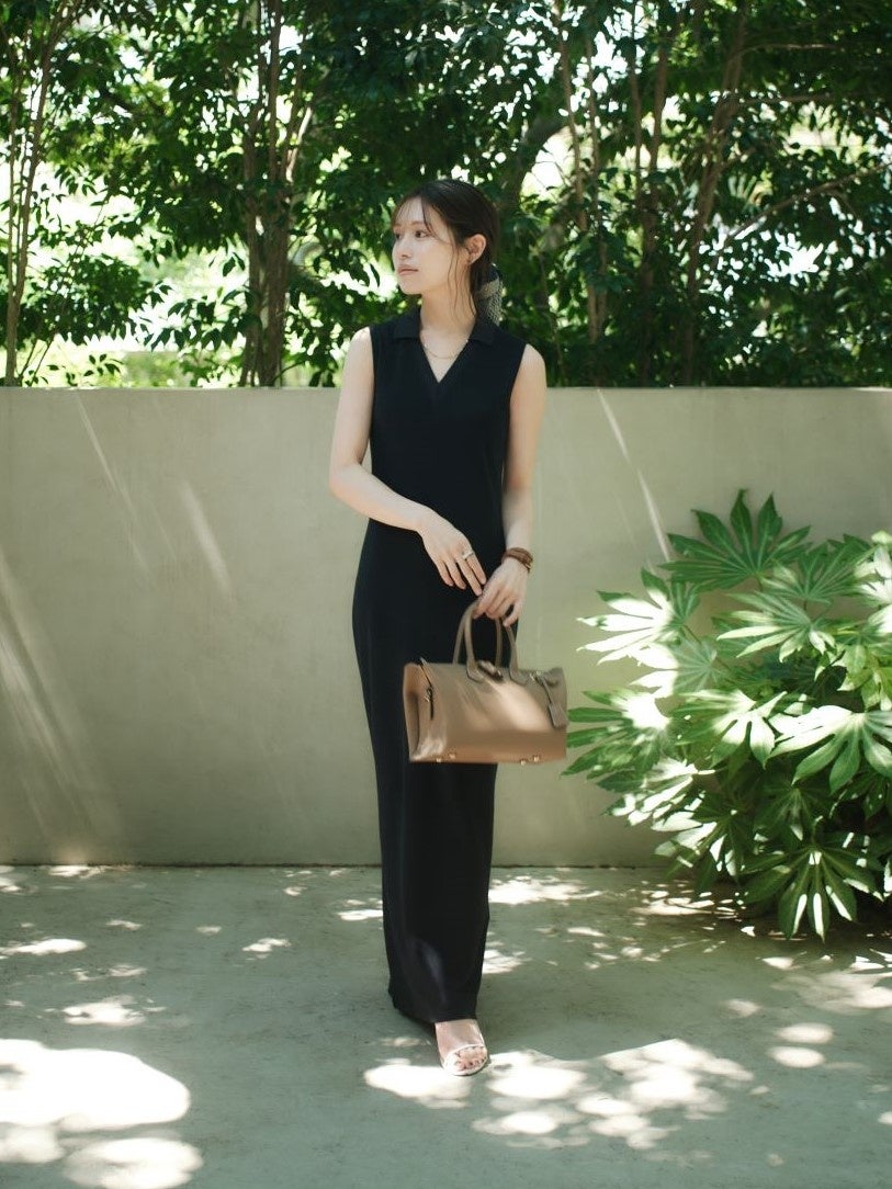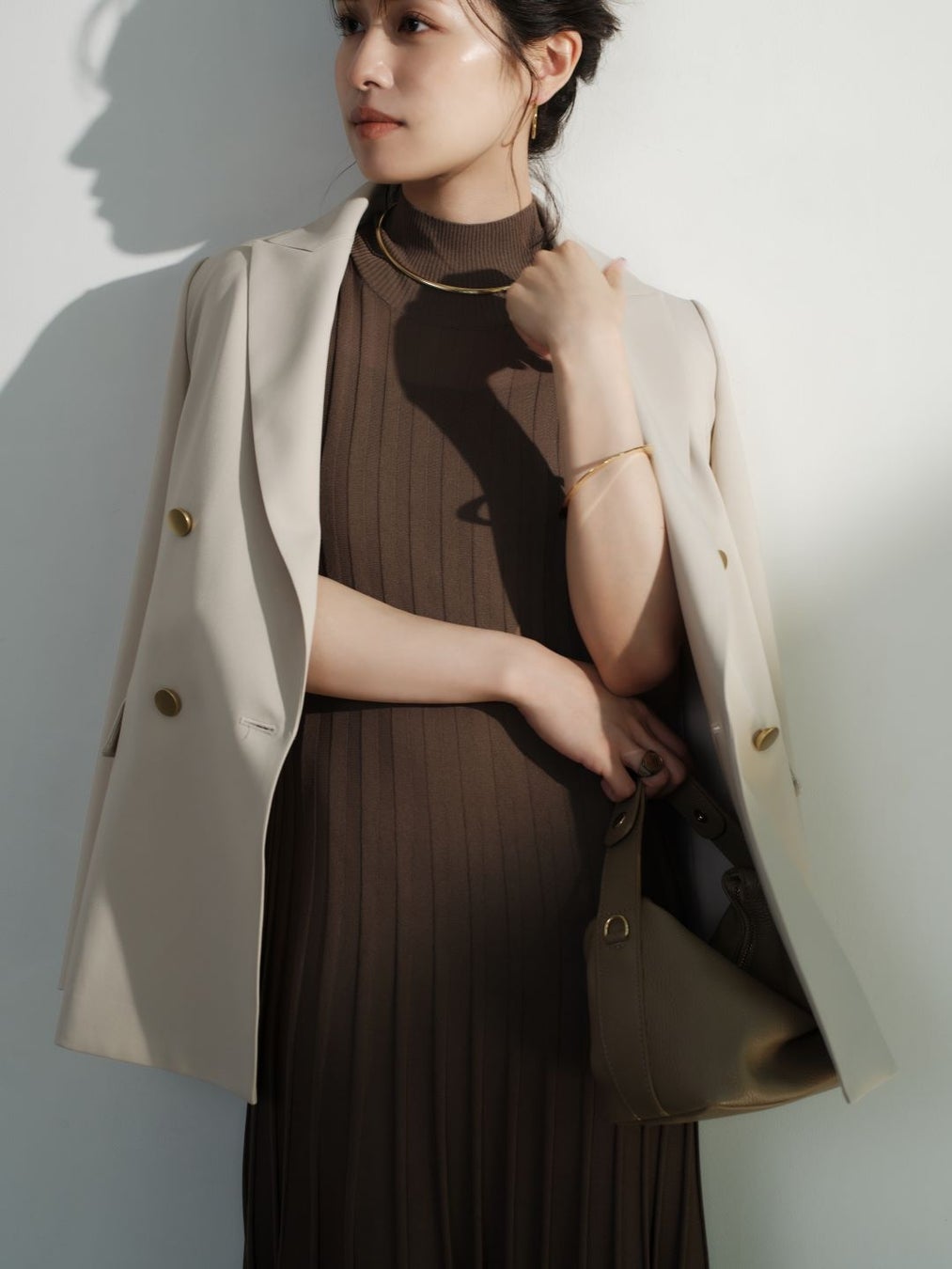 こちらはウェストがシェイプされていて女性らしく上品な印象に。
