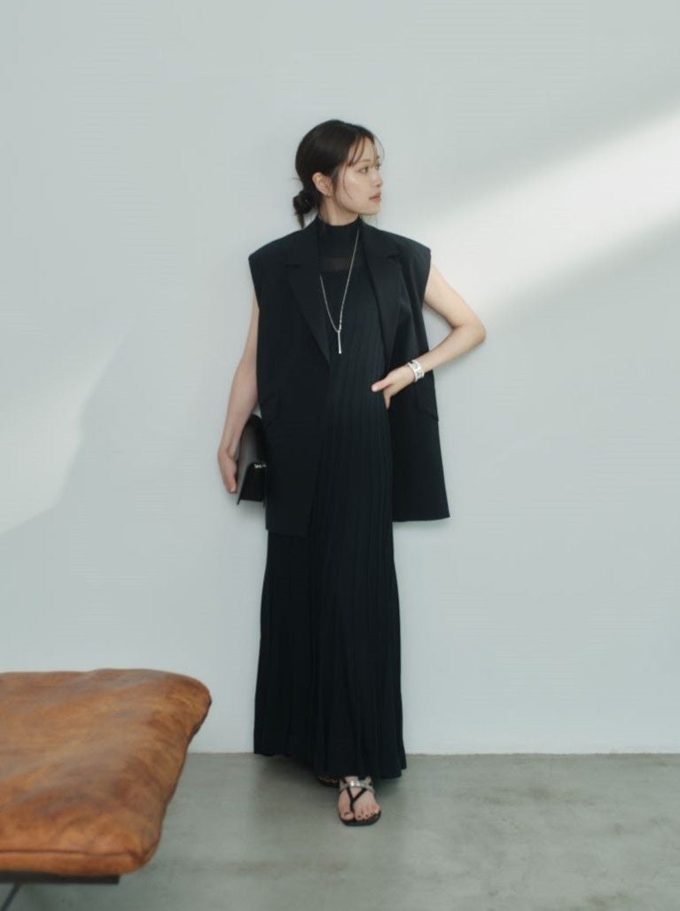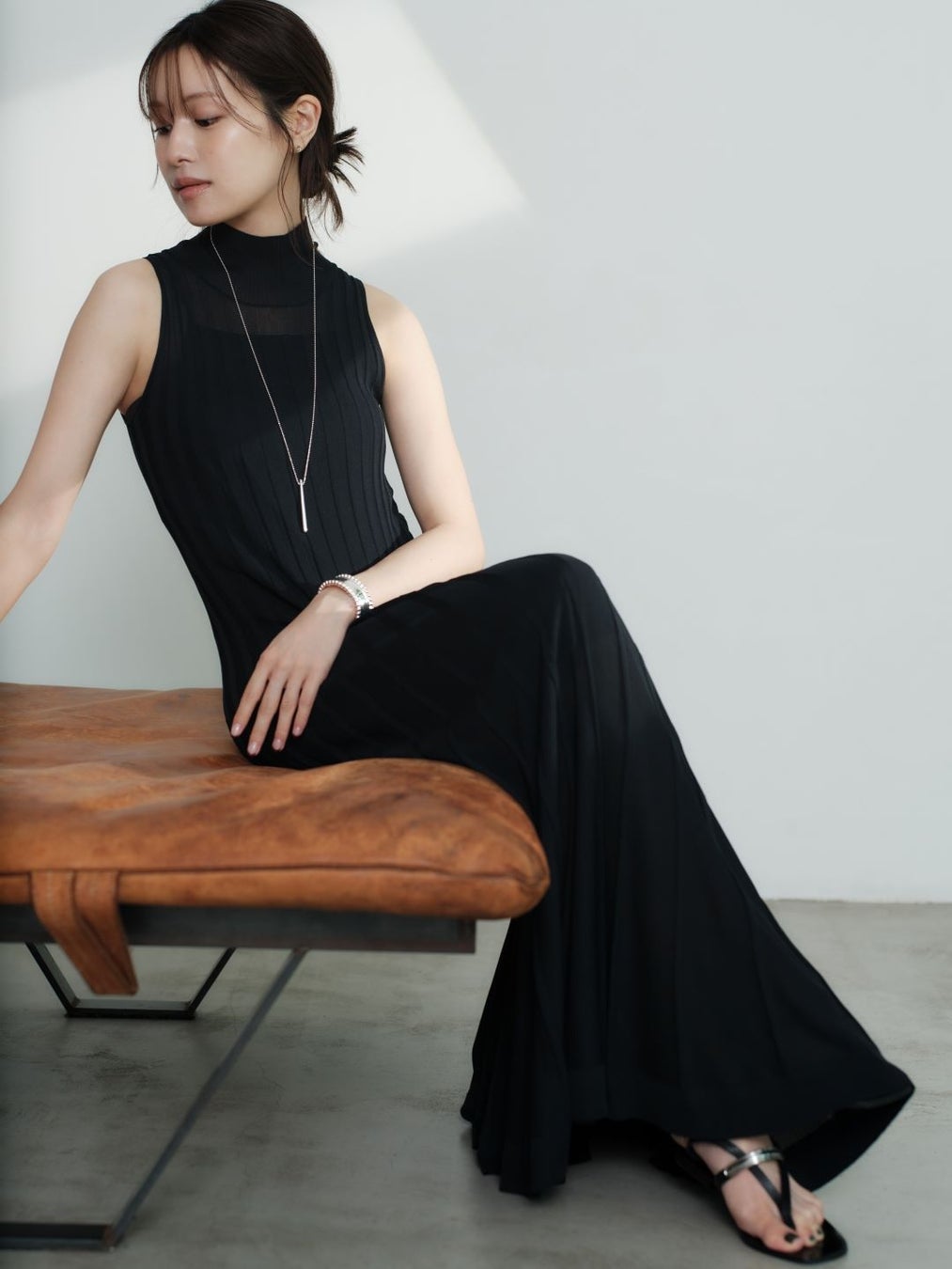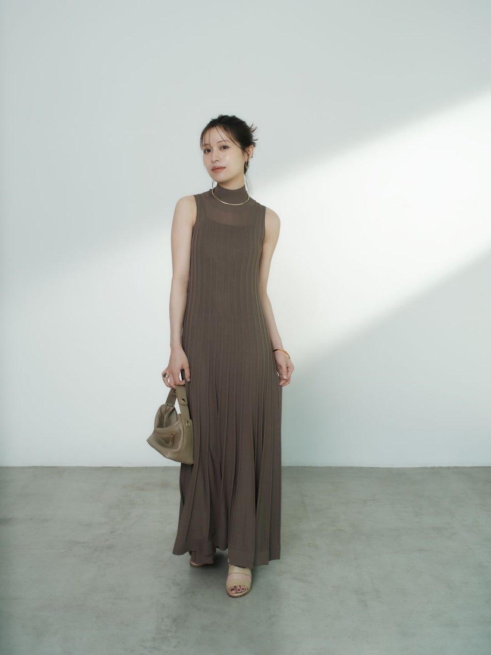 ハイネックですが詰まりすぎずすっきり見えて着痩せが叶うワンピースです。