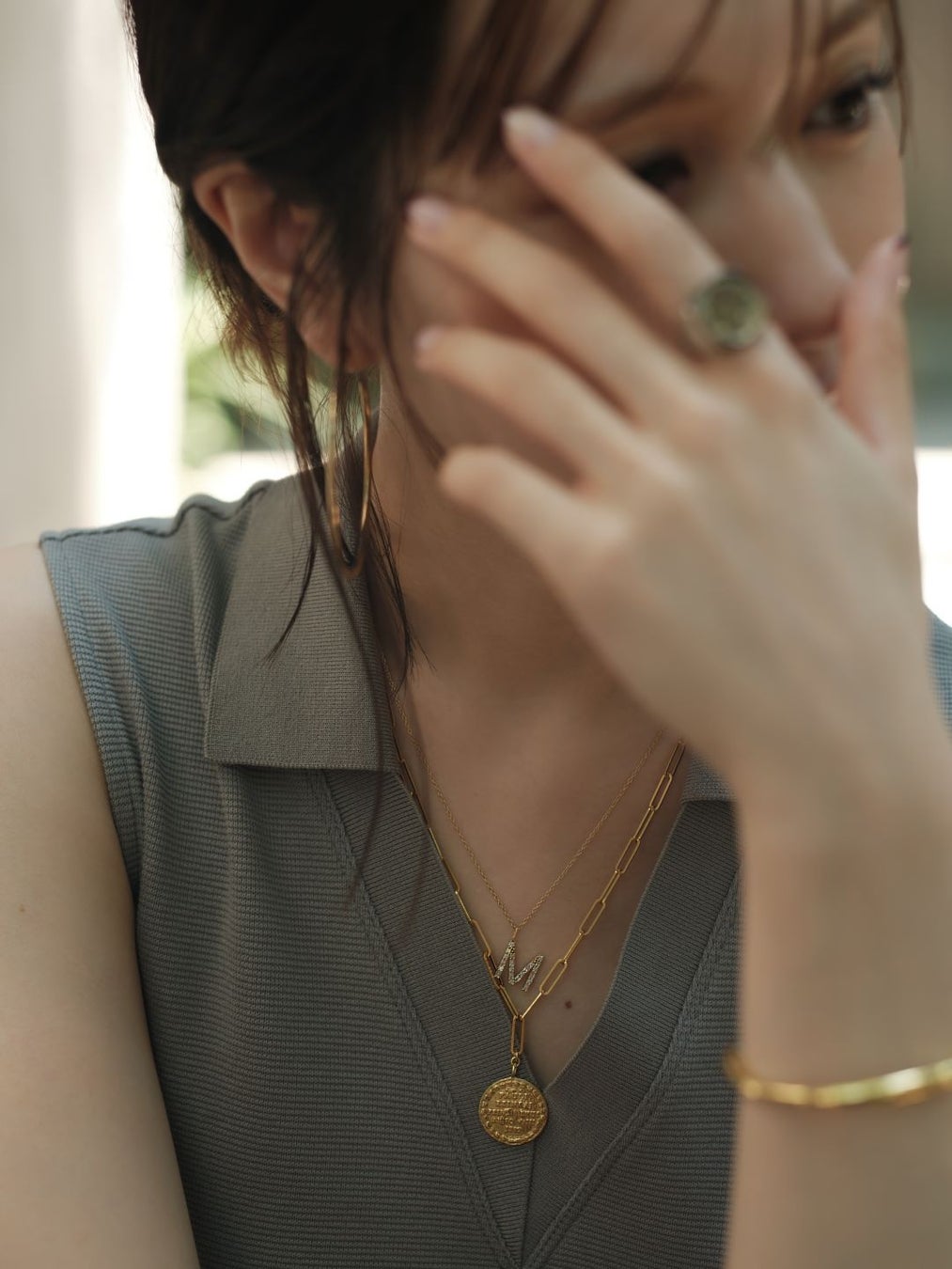 首元のジュエリー合わせを楽しめるデザインもポイントです。
