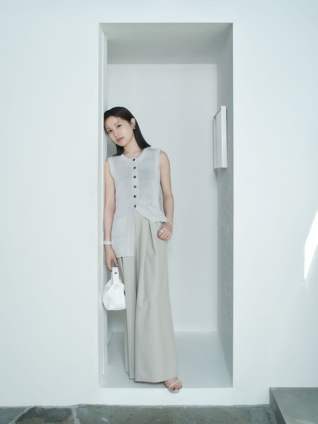 このベストは、いろんなボトムスと合わせることを想像して作りました。