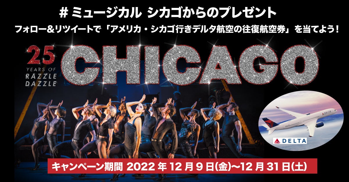 ブロードウェイミュージカル『シカゴ』まもなく開幕!「アメリカ・シカゴ行きデルタ航空の往復航空券」が抽選で当たるキャンペーンを開催!