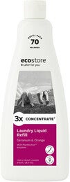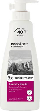 エコストア初のポンプ式の形状で、3プッシュで1回分を簡単計量できます。従来品のランドリーリキッドを約3倍濃縮*¹しました。