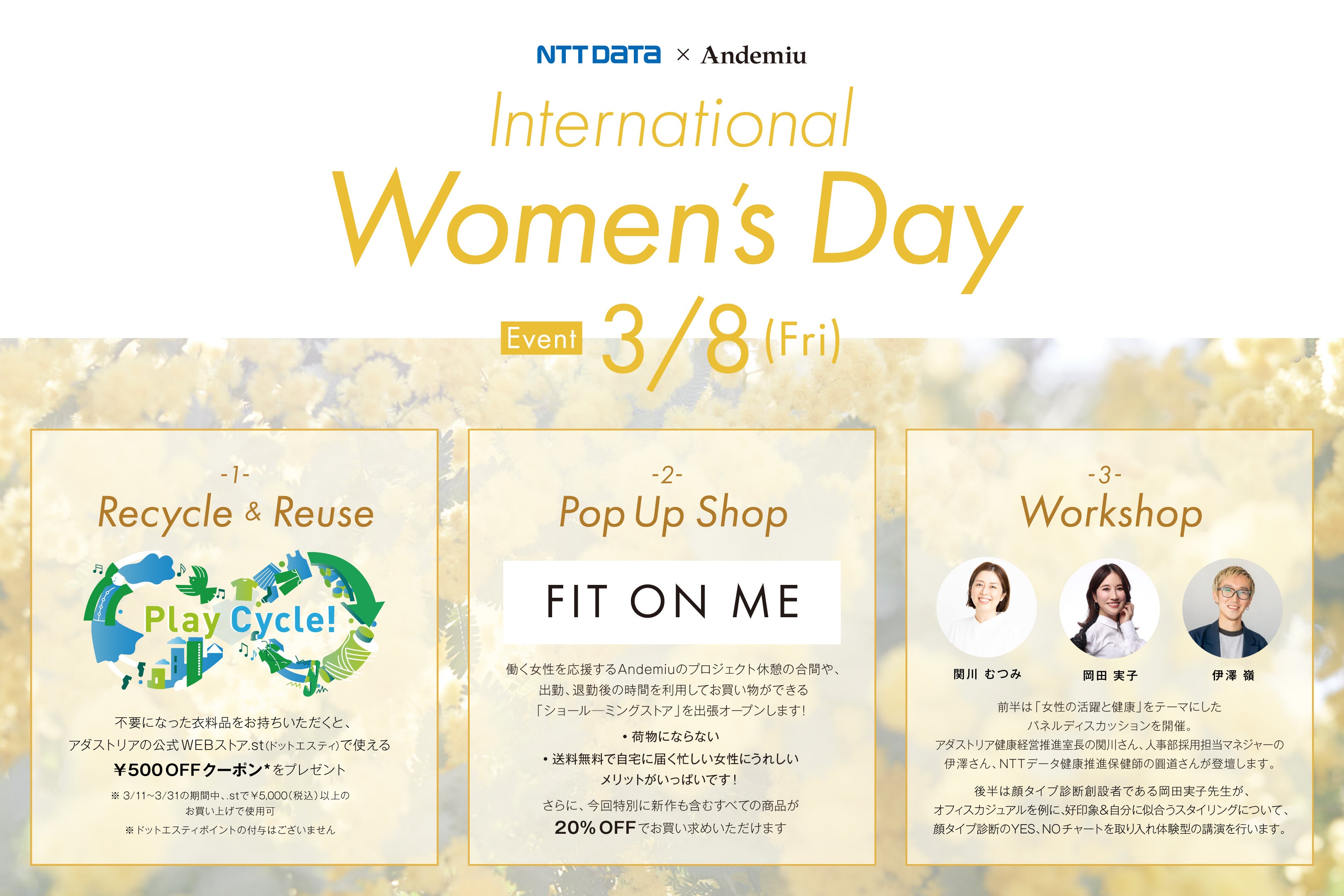 3月8日「国際女性デー」×「サステナビリティ」イベントアダストリアが展開するアパレルブランドAndemiuとNTTデータがコラボし“働く女性を応援”するスペシャルイベントを開催