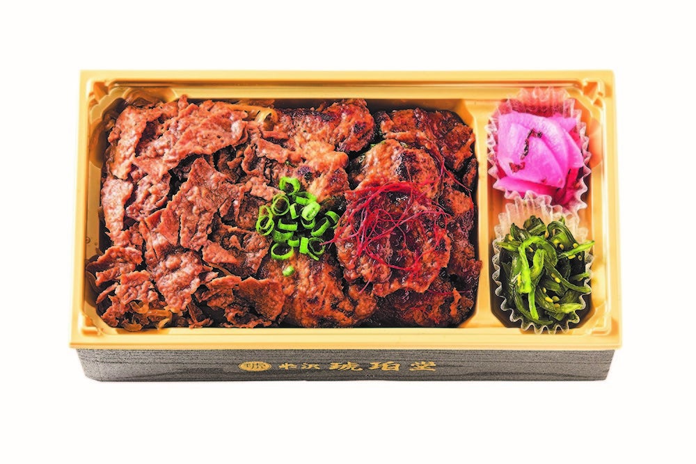 オリジナルの焼肉弁当のタレを使い「NEXTカルビ」を焼いたものと、オリジナルのすき煮のタレで「NEXT牛丼」を煮たものの二種を味わえます。「NEXT カルビ」は、しっかりと弾力のある歯ごたえと、香ばしい風味が特徴。「NEXT 牛丼」は、牛のこま切れ肉を意識した、薄切りと小さなカットで食べやすい! 白滝煮とごぼう煮も入って飽きない味わいです。