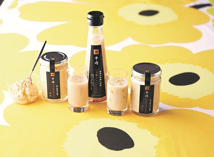 長ねぎに合う旨み塩に隠し味のごま油を加えた「旨塩ねぎだれ」。玉ねぎの甘みを活かした「玉葱ドレッシング」。みじん切りにした玉子の食感を残した「タルタルソース」。中嶋“60年の歴史”をご自宅で。