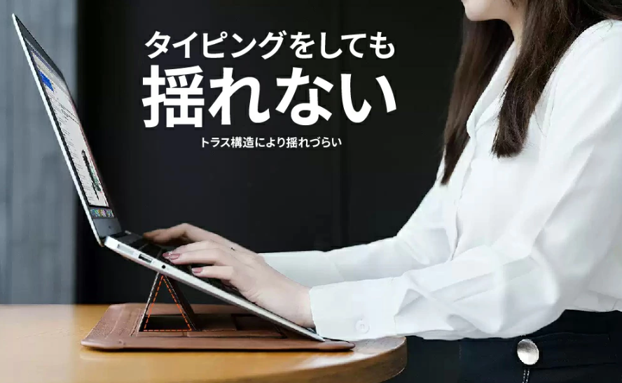 また、トラス構造によりスタンドを使用することでタイピングをする際にラップトップが揺れづらくなります。