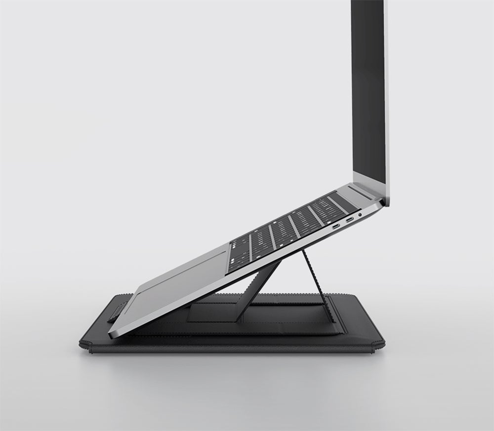 Guxury-Sleeveは普段、ラップトップケースとして使用できますが、なんとラップトップスタンドにも変化します!