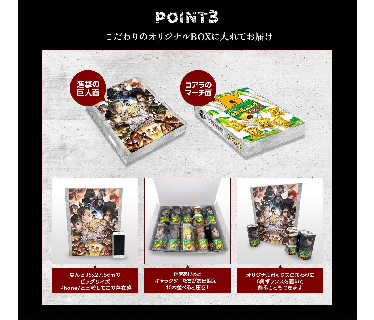 『進撃の巨人』のビジュアル入り特別デザインは全10種類。オリジナルBOX入り