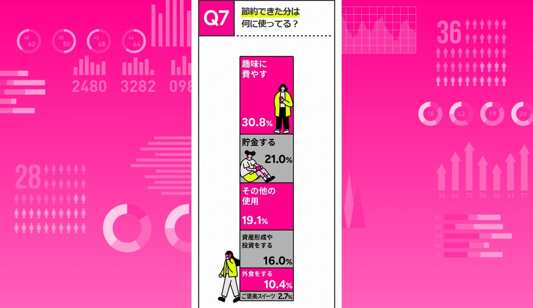 また、「固定費(キャリア代)を安く抑えた分のお金をどんなことに使っていますか?」という質問では、37%の方が投資や貯金に回していると回答いただきました。その中で年代別に見てみると20代の方は50.1%、30代は50.7%と約半数の方が投資や貯金に活用していることが判明しました。