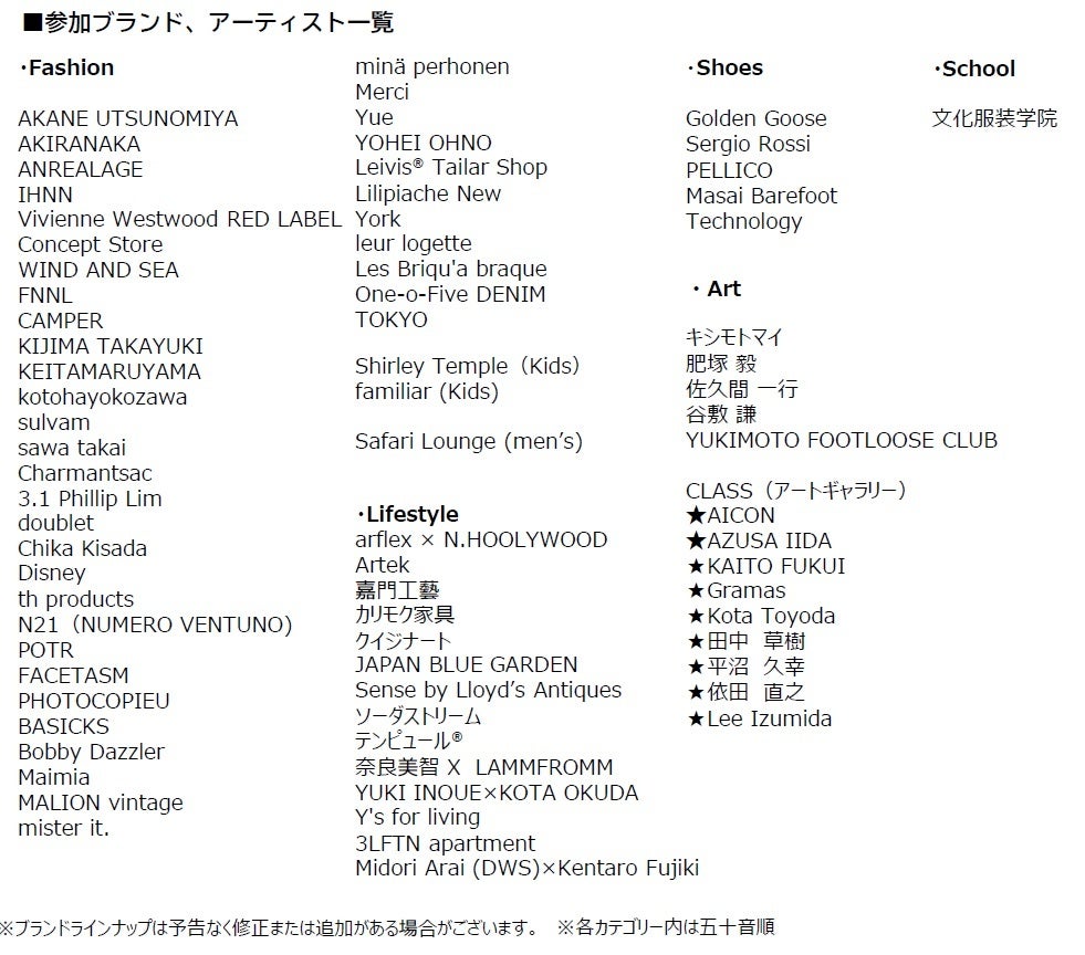 - 参加ブランド、アーティスト一覧