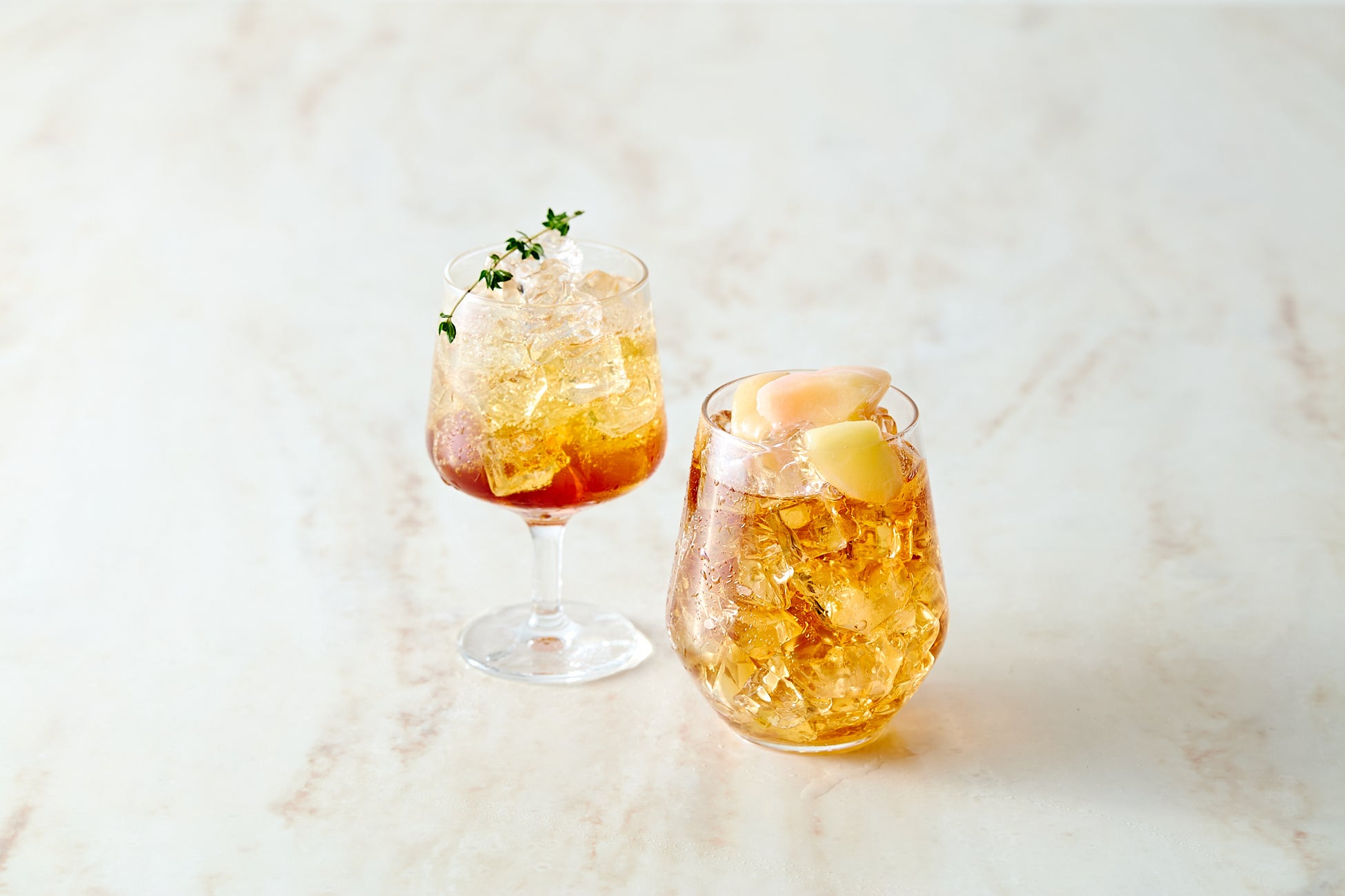 フレッシュな白桃をたっぷりと使ったソースを、自家製アールグレイシロップで割った爽やかなティーソーダ。