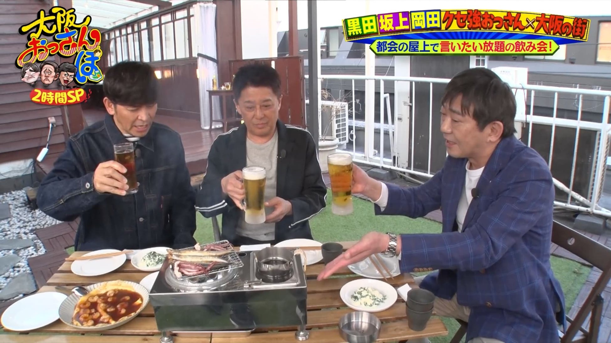 燗銅壺で作った熱燗とししゃも、そして坂上と黒田お手製のおつまみで乾杯! 話題は4月に結婚を発表した岡田の娘・岡田結実の話に。報道が出る数日前に娘の結婚を知ったという岡田が、そのときの娘とのやりとりを赤裸々に語る!