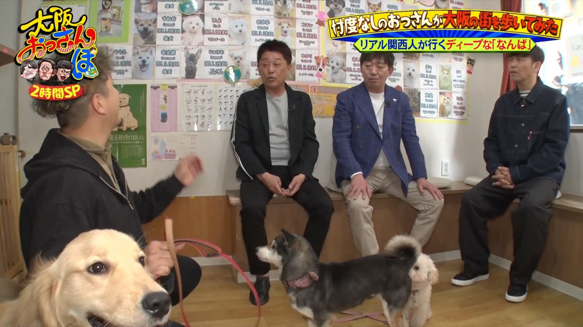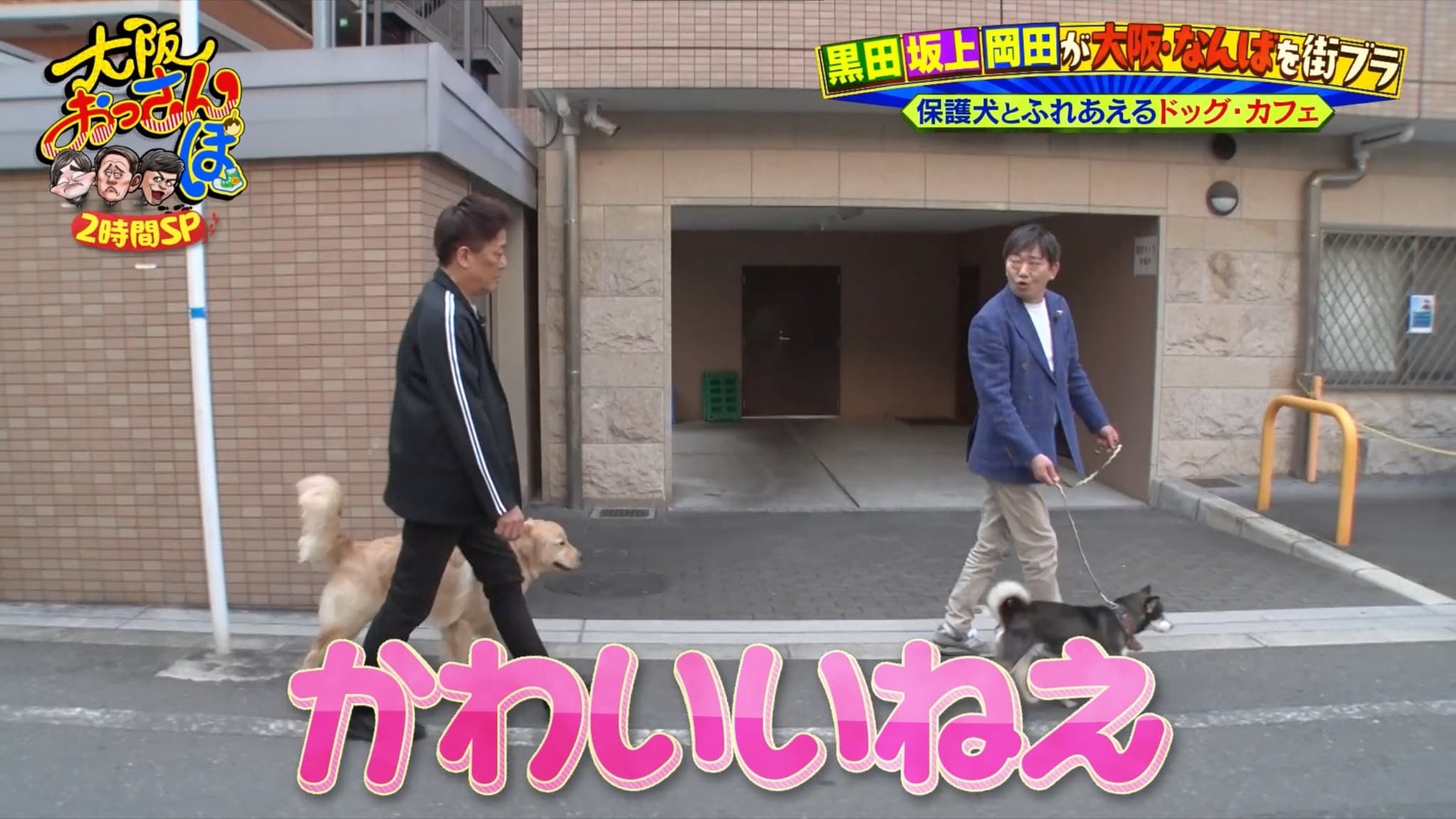 坂上が犬や猫の保護活動を始めたきっかけを、現妻の影響だと打ち明ける場面も。キムさんと保護活動の大切さを熱く語り合ったあと、保護犬たちとの散歩を楽しむおっさんたち。