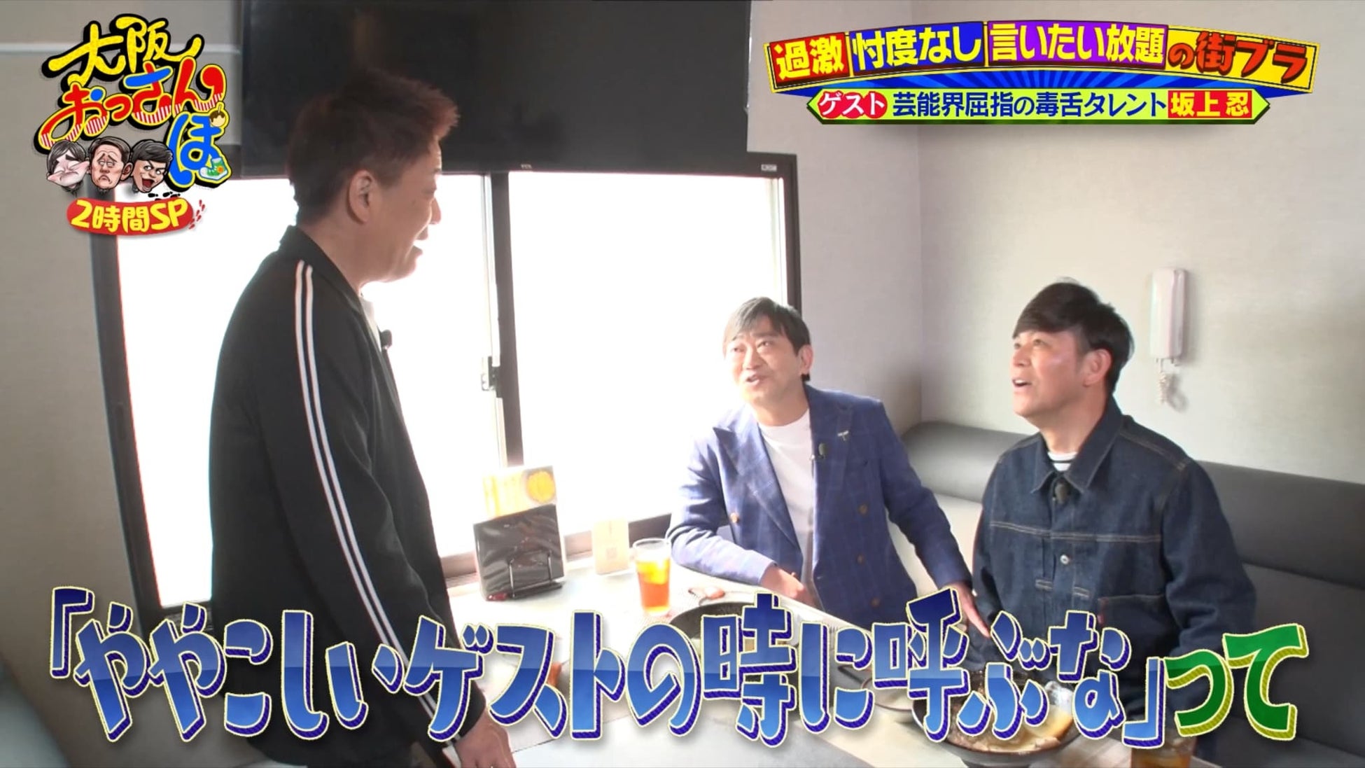 ロケは、黒田の後輩の元芸人が経営する「おでんのハチマル」からスタート。黒田と今回ロケに同行するますだおかだ・岡田圭右が待ち受けるのは、芸能界屈指の毒舌タレント、坂上忍。岡田は「ややこしいゲストの回に呼ぶな!」とさっそく言いたい放題!