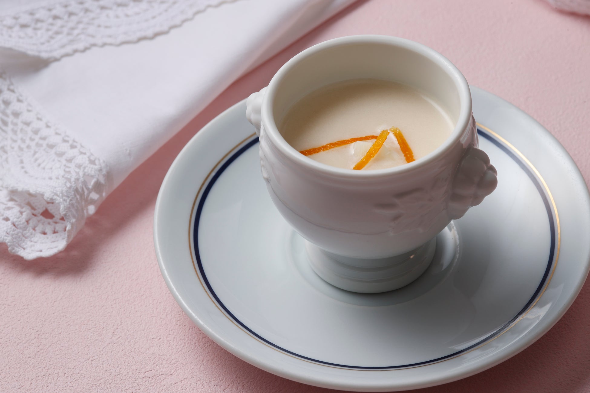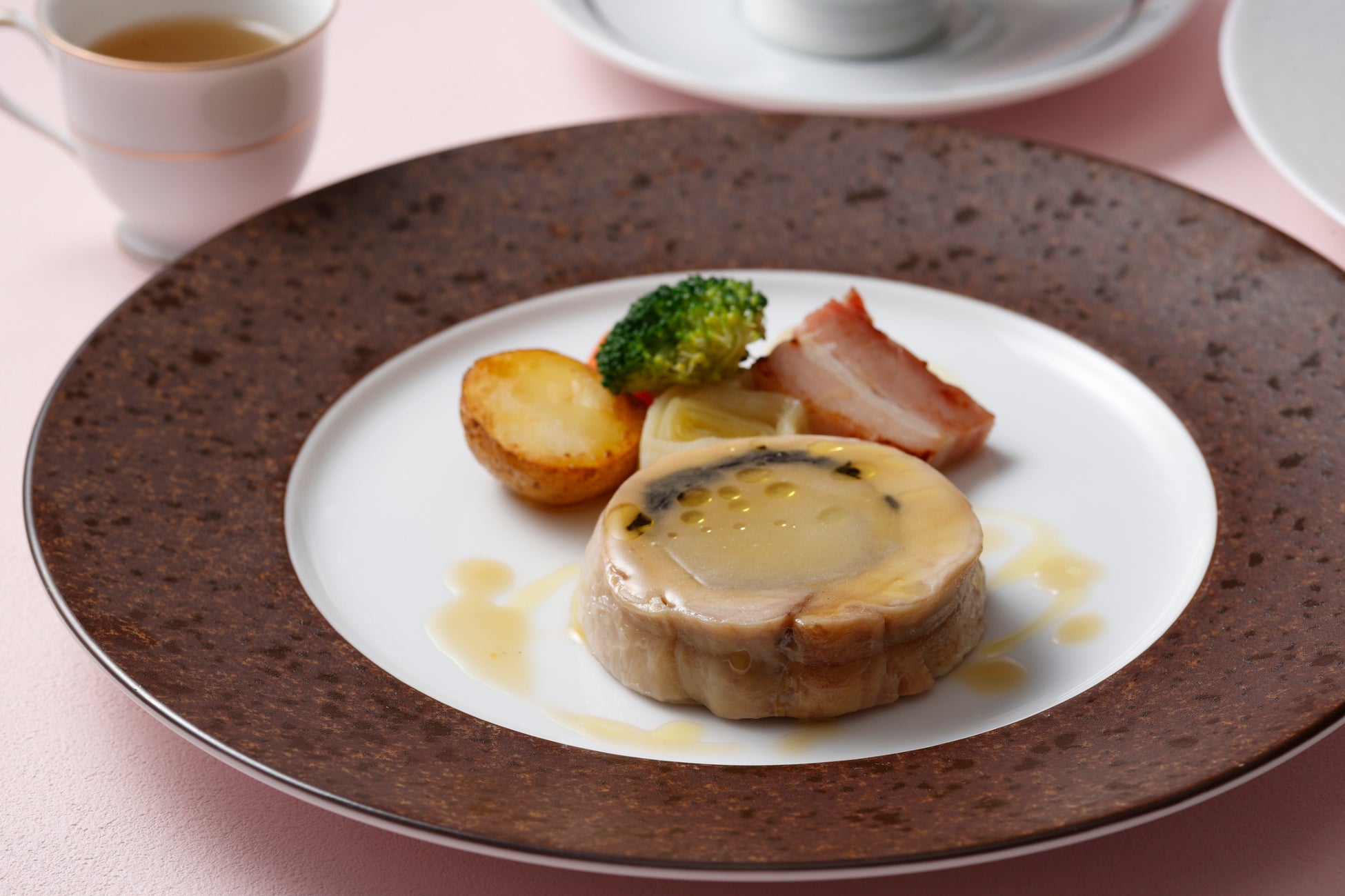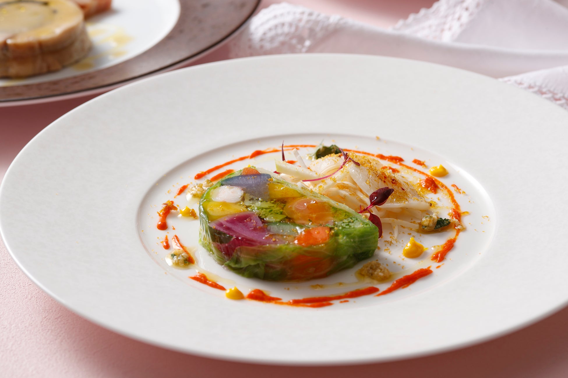 タワー館5階パノラミックレストラン ル・ノルマンディの店内から望む景色は、空気の澄んだ冬が一年の中でも一番綺麗です。青々と広がる快晴の空や冬凪の横浜の海を眺めながら、冬の恵みをご堪能いただける各種メニューをご用意しました。冬野菜と魚介のテリーヌに香ばしい炙りイカを添えた、まろやかな根セロリのレムラードでお召し上がりいただく前菜や、冬が旬の聖護院カブのクリームスープには、さわやかな柚子の香りをほんのりと添えました。メインディッシュには、錦爽鶏のバロティーヌを旬の野菜とともにポトフ仕立てでご提供するあたたかな一皿のほか、4種類よりお選びいただけます。澄み渡る景色を眺めながら過ごす美食時間は、優雅な船旅気分も味わうことができる至福のひとときです。心まで温めるこの冬おすすめのランチをどうぞごゆっくりとお楽しみください。