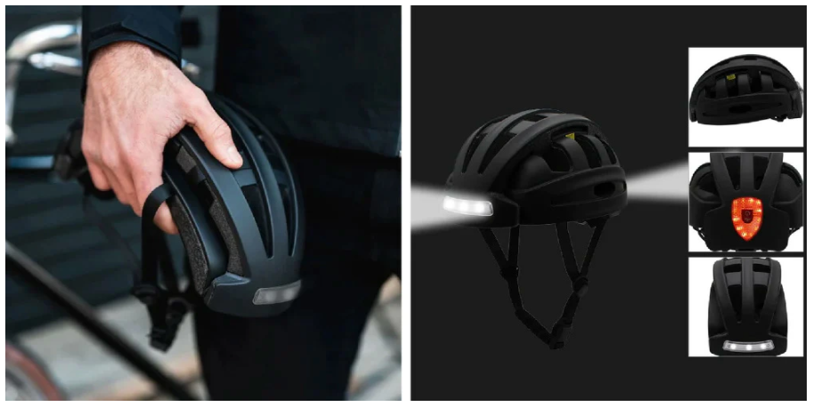 ■GeeMet約10時間点灯のLEDライト内蔵・小さく折りたたんで持ち運びに便利な自転車ヘルメットGeeMet【高強度な一体成型/通気性良く洗える衛生的な内側パッド/USB-C充電式/大人用男女兼用】