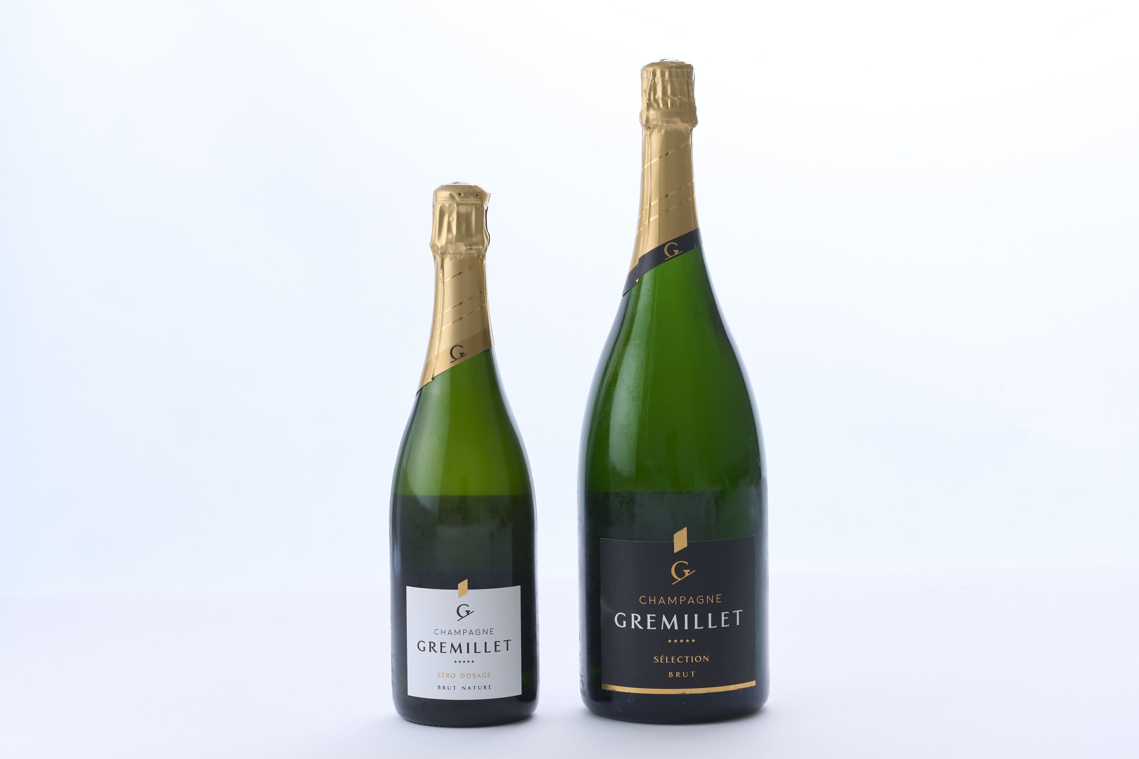 〈和洋酒〉右)NV グルミエ セレクション ブリュット(マグナムボトル 1500ml) 19,800円、左)サイズの参考(通常サイズ750ml)