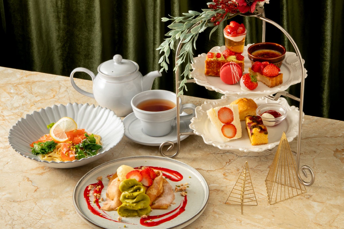 苺とピスタチオを贅沢に取り入れたアフタヌーンティー。