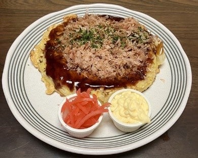 山芋がたっぷり入った生地でふんわりと仕上げた、いか、えび、あさりなどの具沢山のお好み焼きです。
