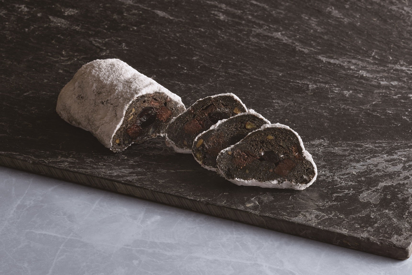 アマレーナチェリーとチョコレートをふんだんに配合し、ブラウニーが中心に隠れる一味違ったジューシーなシュトーレン。こちらもミニサイズでご用意しています。
