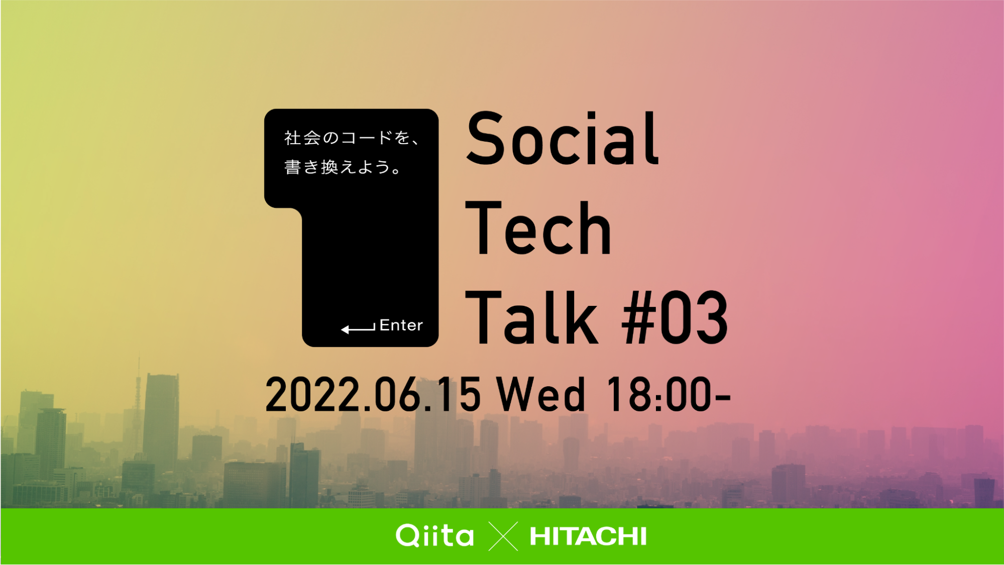 今回の無料オンラインセミナー「Social Tech Talk #03」は、日本最大級のエンジニアコミュニティ「Qiita」を運営する当社と、IT・OT・プロダクトを用いて様々な分野においてグローバルで社会課題解決に挑む日立製作所のコラボレーションの一環として、価値ある情報をエンジニアの方々にお届けすべく開催します。