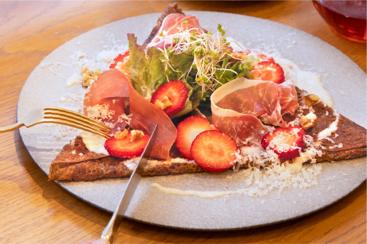 ◆生ハムと苺のサラダガレット 発酵柚子ヴィネグレット