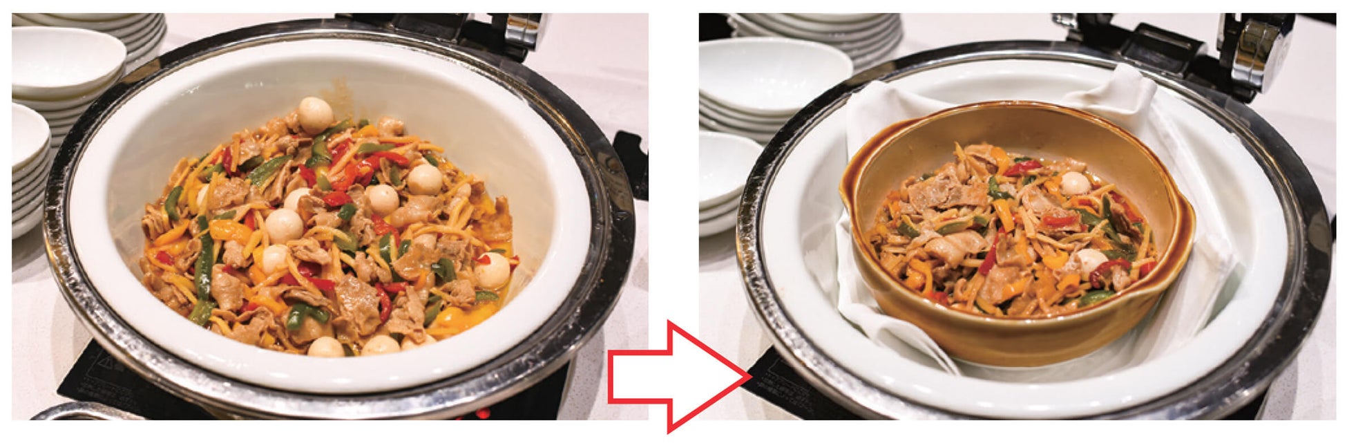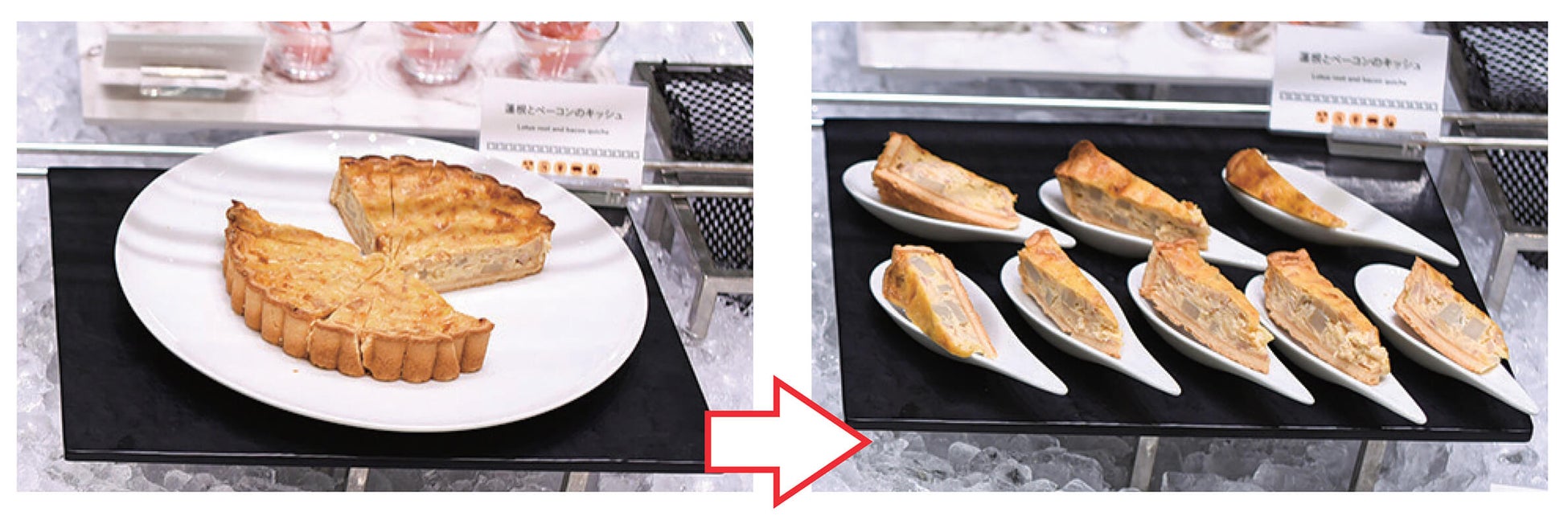 小皿提供や、時間帯・人数に合わせて盛り付け容器のサイズを変更するなど、ビュッフェ特有の「出しすぎ」を防ぎ、食品ロスを最小限にする工夫を実践しています。