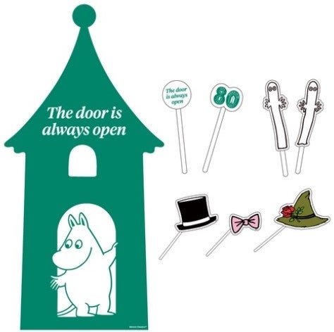 80周年を象徴するキーアート「ムーミンやしきのドア」のフォトスポット。撮影をより楽しめるフォトプロップスもご用意しました。