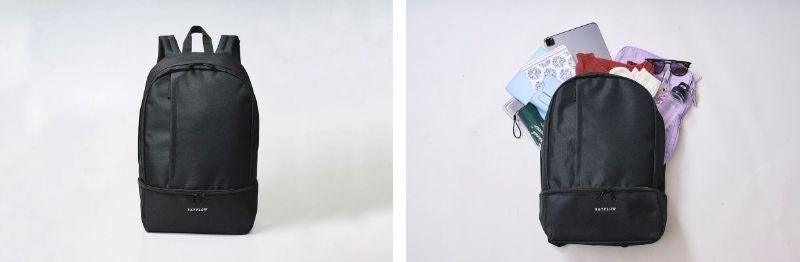 二つ目の「バックパック」は、底部分にシューズが収納可能な2層構造で、通勤・通学や出張、ジムなど、日常的にもアクティブなシーンにも使いやすい、機能的なデザインに仕上げています。