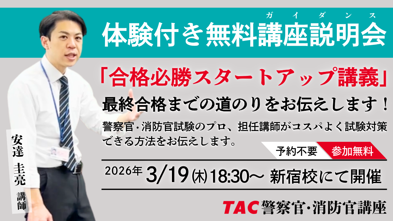 TAC警察官・消防官講座の担任 安達 圭亮(あだち けいすけ)講師がお伝えします!