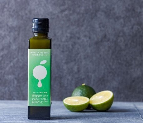 有機質肥料栽培にこだわる「ひむか農園」のへべすを丸ごと搾った無添加100%果汁。1瓶にへべす5~6個分の果汁が含まれています。かぼすやすだちに比べて香り高く、甘みとコクを感じる事ができ、料理のアクセントに。