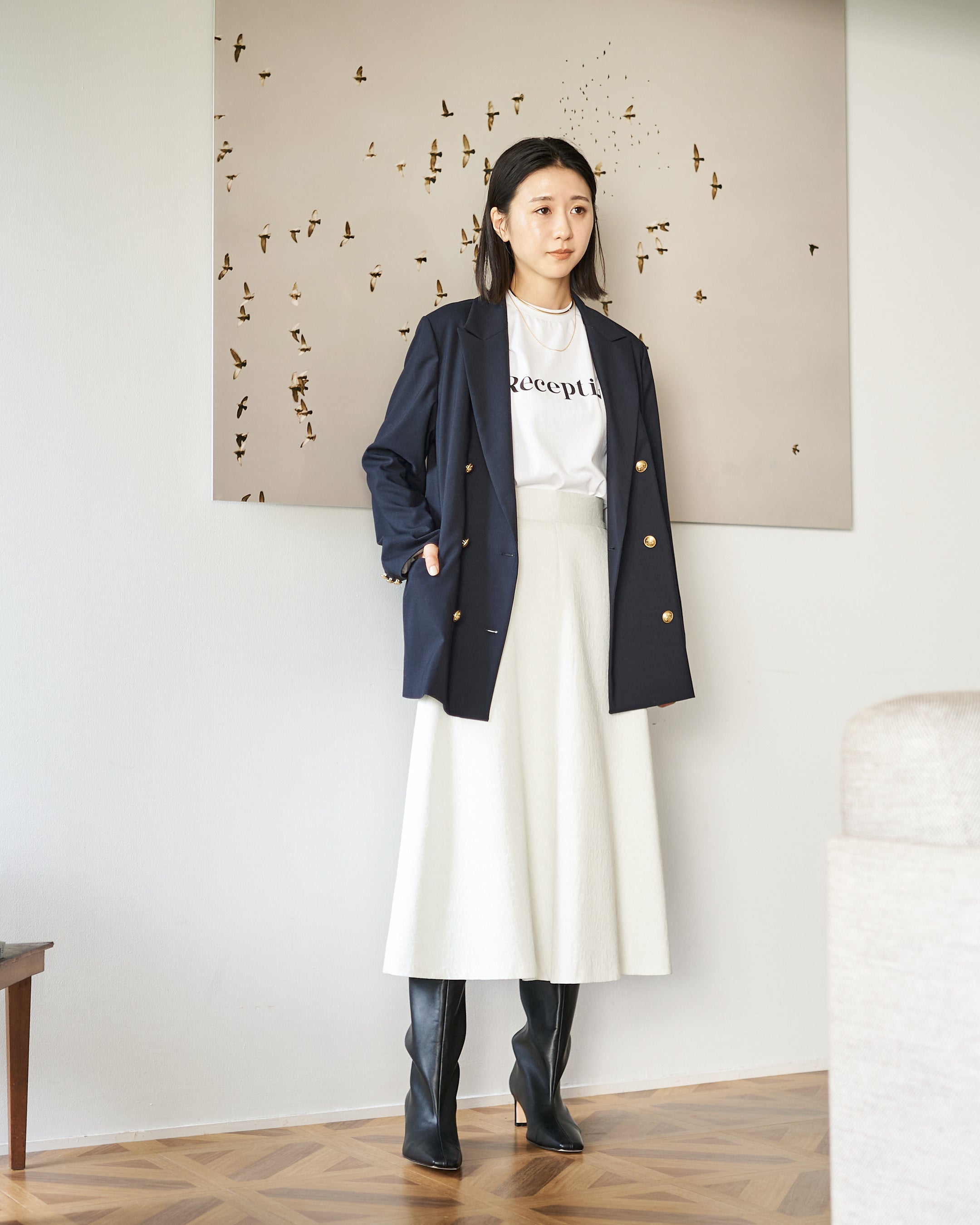 ドラマチックでありながら日常使いしやすいアイテムで、立体感のあるサーキュラーシルエットが女性らしい一枚。