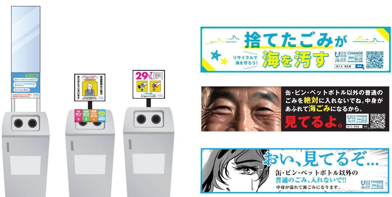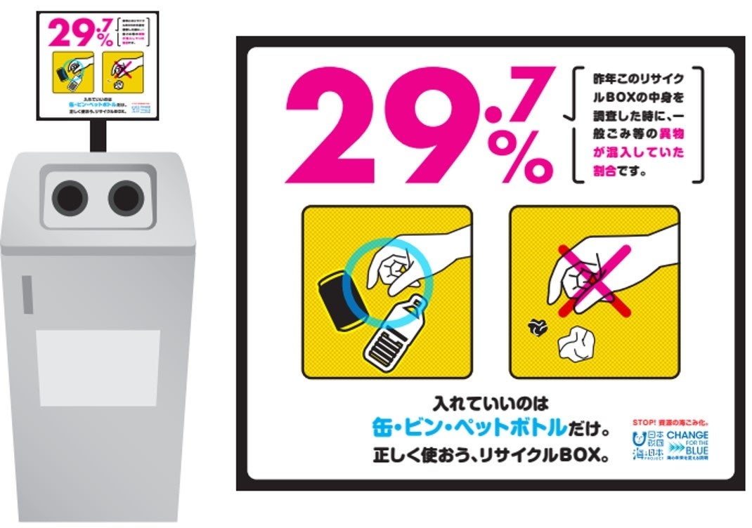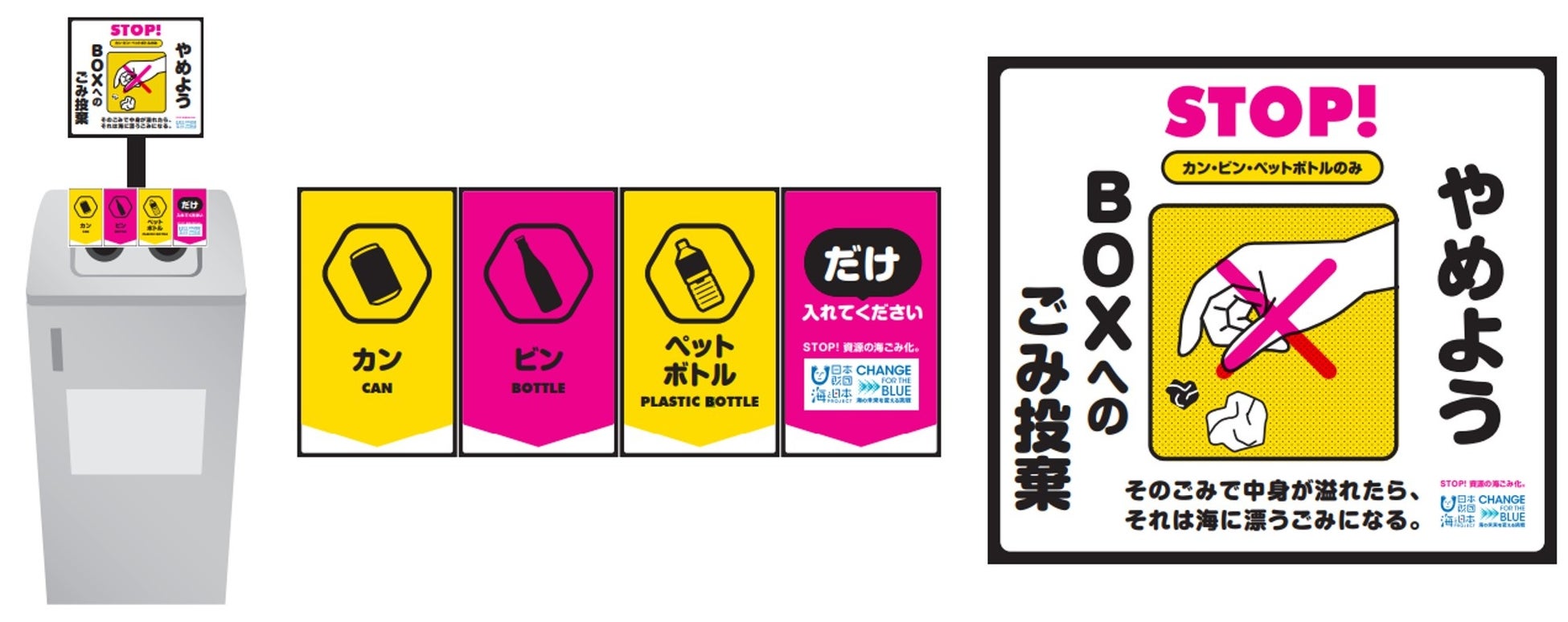 コカ・コーラボトラーズジャパン株式会社全面協力のもと、大分県内の屋外のリサイクルBOXに海洋ごみ削減の願いを込めたオリジナルステッカーを掲出いたします。