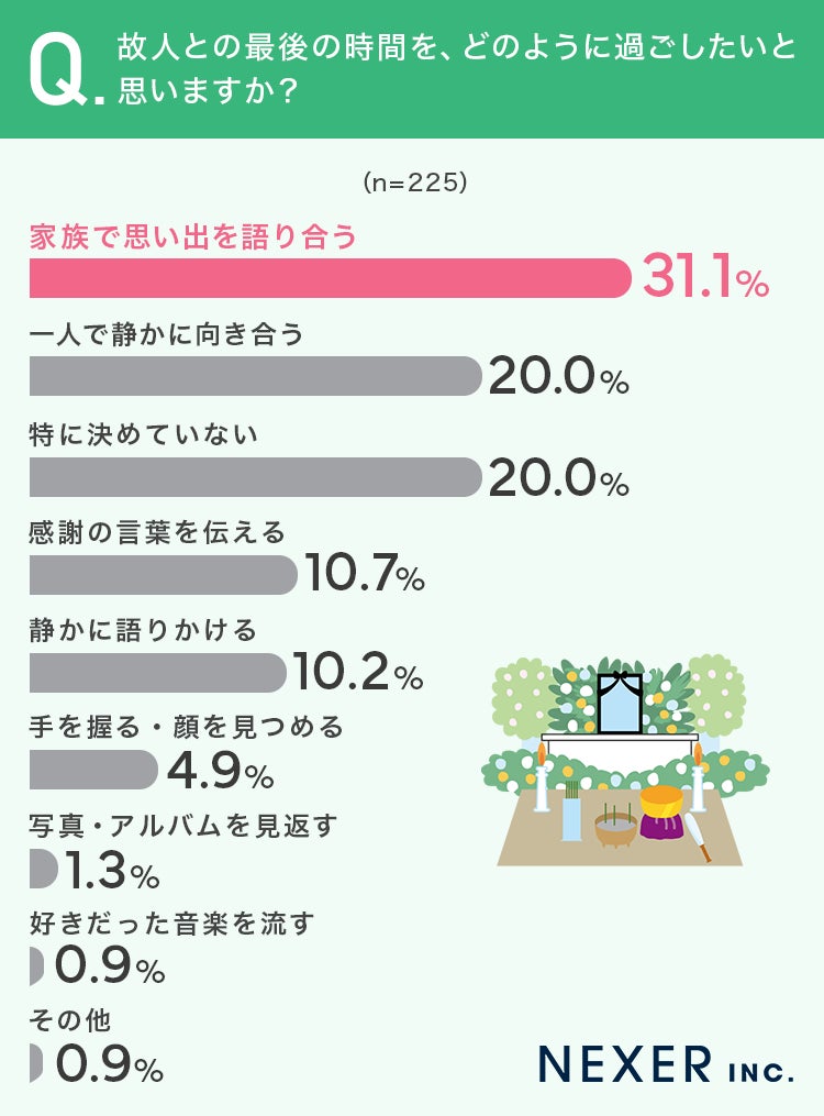 ■31.1%が、故人との最期の時間を「家族で思い出を語り合う」ために過ごしたいと回答