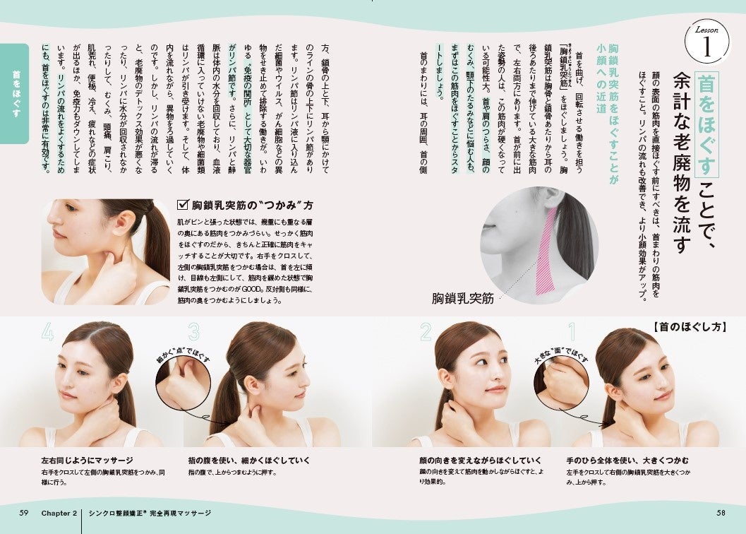 - ほうれい線、エラ張り、面長、頬骨の出っ張り、口元のたるみなど、お悩み別解消マッサージも完全網羅!
