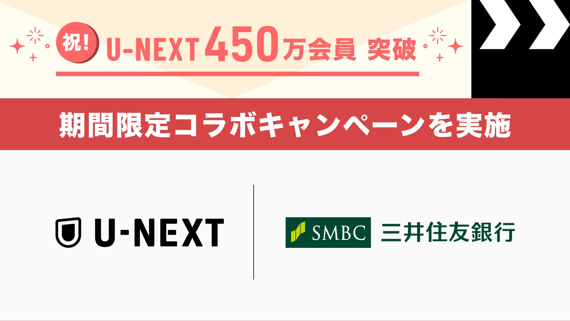 会員450万人突破を記念して、U-NEXTと三井住友銀行が期間限定コラボキャンペーンをスタート