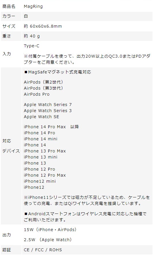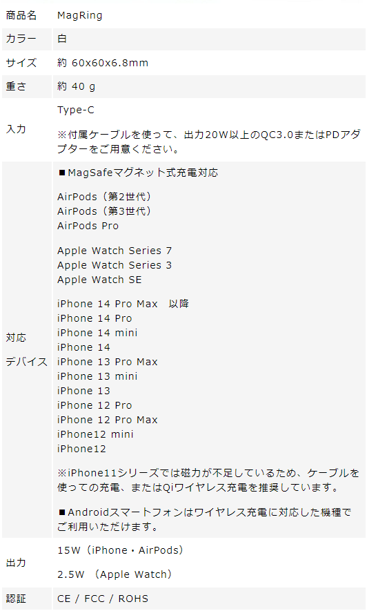 ※ご購入前に、お手持ちのスマートフォンの機種がMagSafe充電、またはワイヤレス充電に対応しているかを必ずご確認ください。
