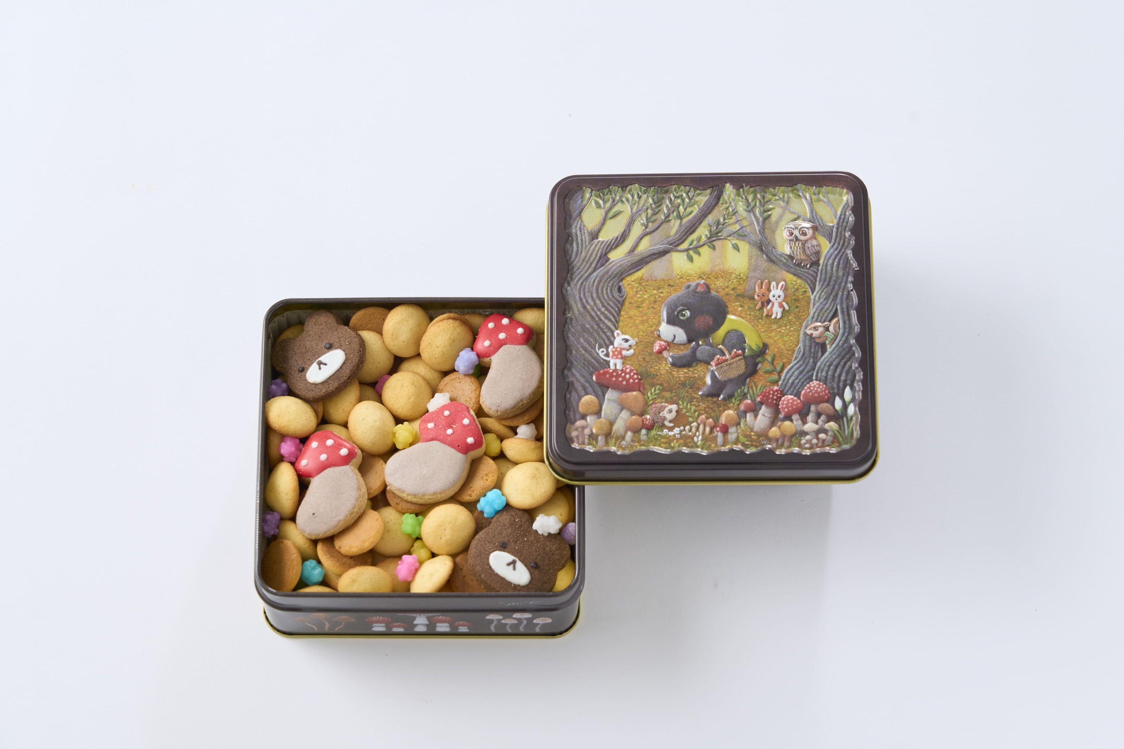 絵本作家、たなかしんさんのデザインは本当に絵本の中にいるような可愛い缶。